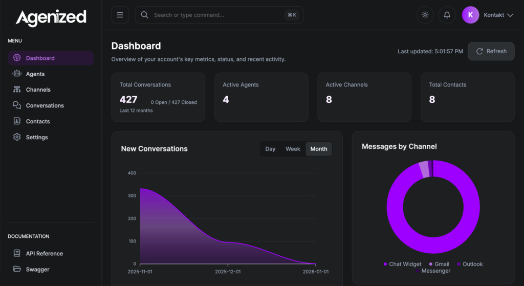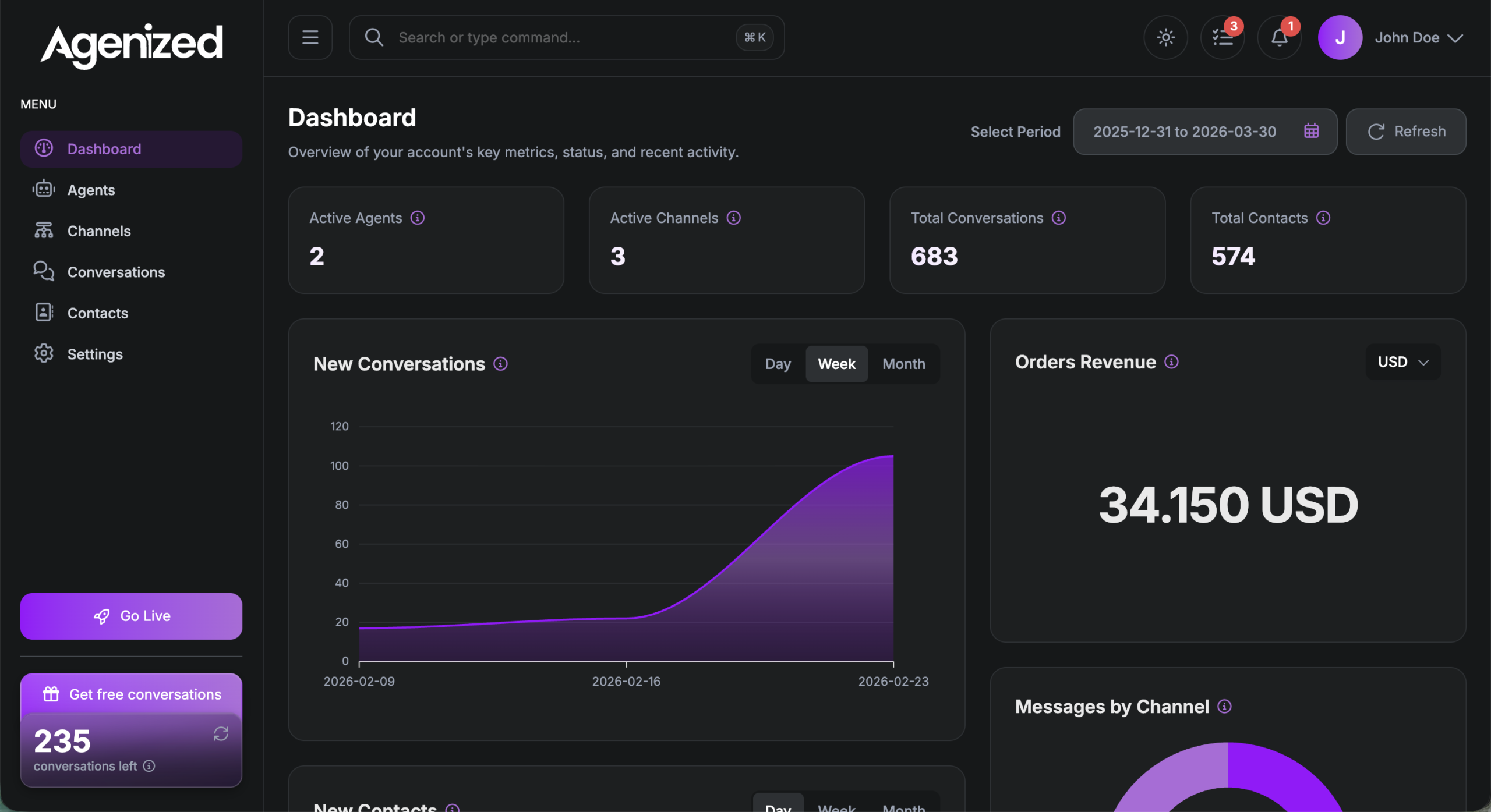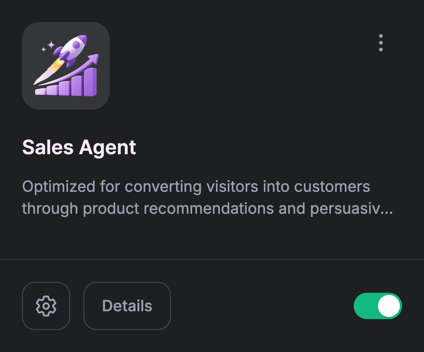 Start with a Sales Agent, Support Agent, or a Custom Agent, then tailor tone, rules, and knowledge to match your brand.