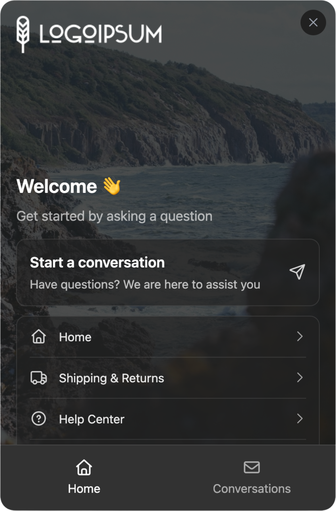 Set a friendly welcome message and add quick-start prompts like “Find the right product”, “Ask about a product”, or “Get help with my order” to guide customers instantly.